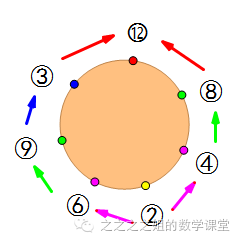 显然,我们可以运用六年级“最大公因数”、“互素”等知识点来分析这四个限制条件,结合题目背景及要求,逐一推理即可找到答案。 1、题中的两个“至少”+“最大公因数都大于1”→得到糖果最少的小矮人糖果数为2颗,我们简记这个小矮人为②; 2、由于“任意两个小矮人得到糖果数不同”+“任意相邻两个小矮人所得糖果数的最大公因数都大于1”+“白雪公主所发糖果数至少”→②的左右两个小矮人所得糖果数为4和6,这两位小矮人简记为④、⑥,如下图所示; 3、接着如果先考虑④,4分解素因数是:4=2×2,也就意味着④的另一边小矮人得到的糖果数必须是2的倍数,而满足条件的最小数只能是8,简记这个小矮人为⑧;同理⑥的另一边就只能是9,简记为⑨; 4、又由于9=3×3,因此⑨的另一边必须有因数3,这个时候我们必须考虑到“七个小矮人所得糖果数的最大公因数为1”即“这七个小矮人所得糖果数互素”+“至少”→⑨的另一边小矮人所得糖果数为3,简记为③; 5、③的另一边也是⑧的另一边,这个小矮人糖果数应当同时含有2和3的两个素因数,又每个小矮人糖果数不同,则这个小矮人至少得到12颗糖果; 因此,白雪公主至少发了44颗糖果!~^-^~